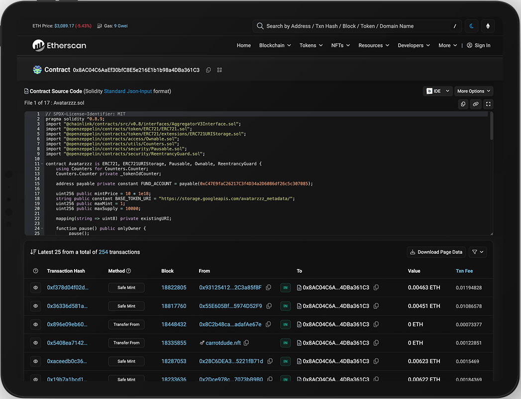Die Ausgestaltung unseres Ethereum Smart Contracts ermöglicht stabile (mint)-Preise und die individuelle Auswahl des vom User gewünschten digitalen Assets, wie man es von klassischen Web2 E-Commerce Webseiten kennt.
